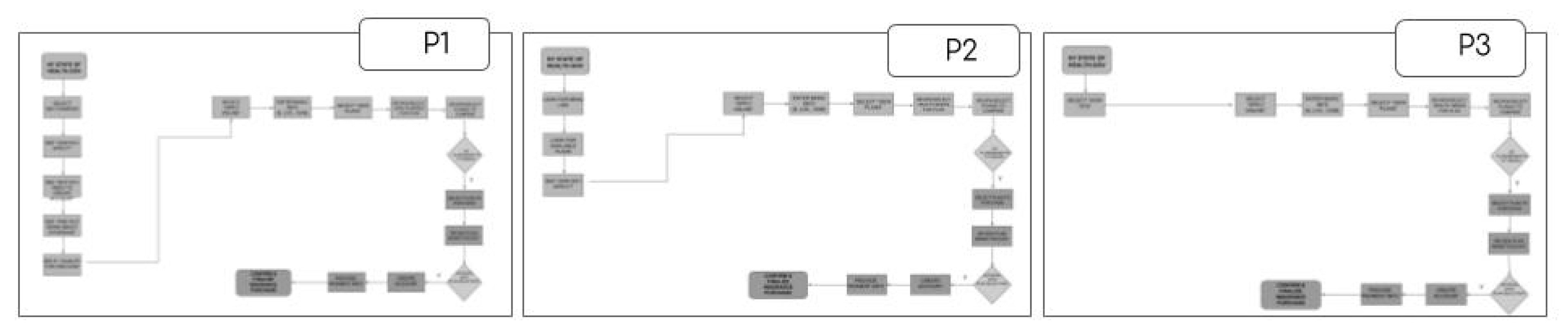 I created user flow charts for each participants to map out their individual steps when using the prototype. This helped me learn that one of my next steps is to focus on the insurance resources information.